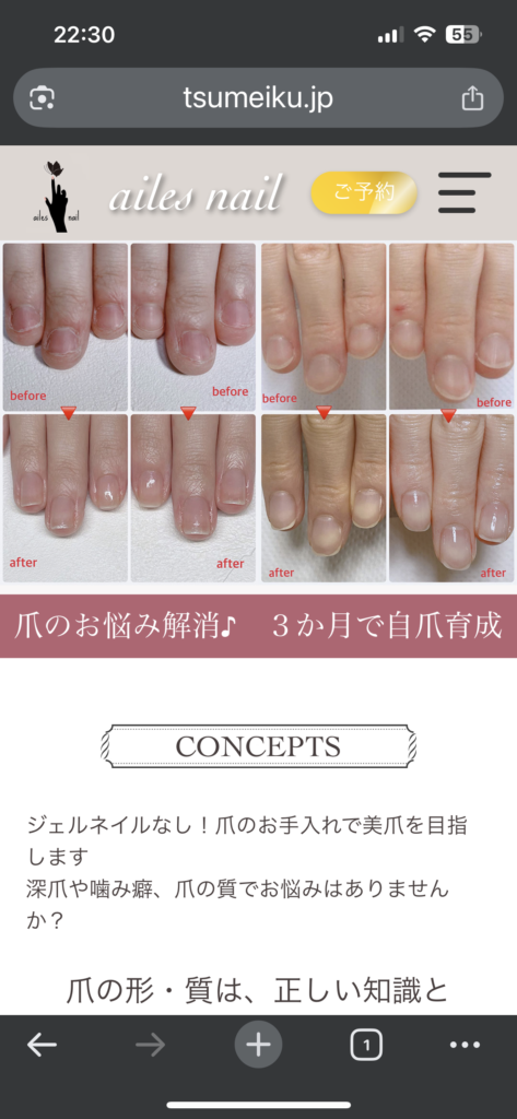 この度、ネイルサロン・ailesNail様のサイトリニューアルをお手伝いしました。